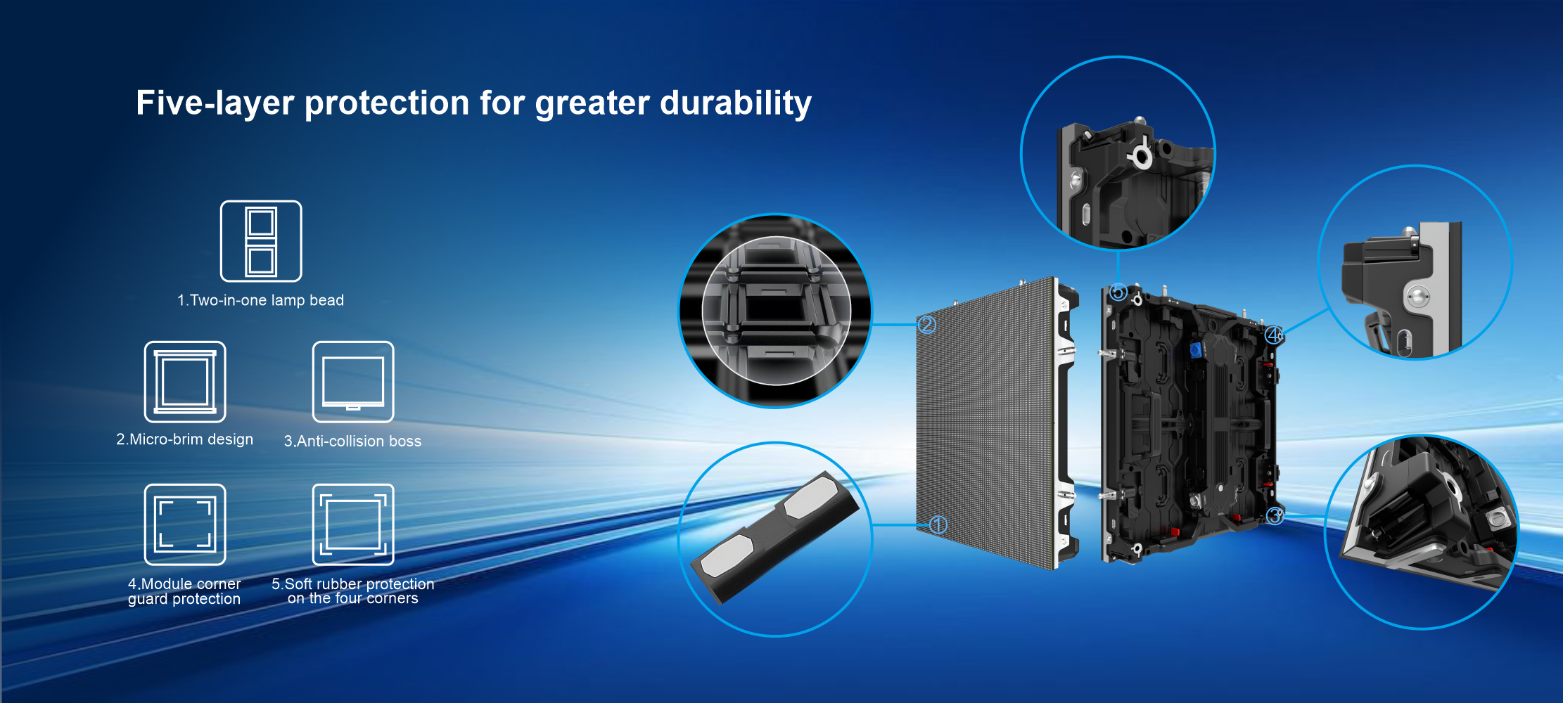 Pixel pitch | Indoor1.9, 2.6; Outdoor 2.9, 3.9 |